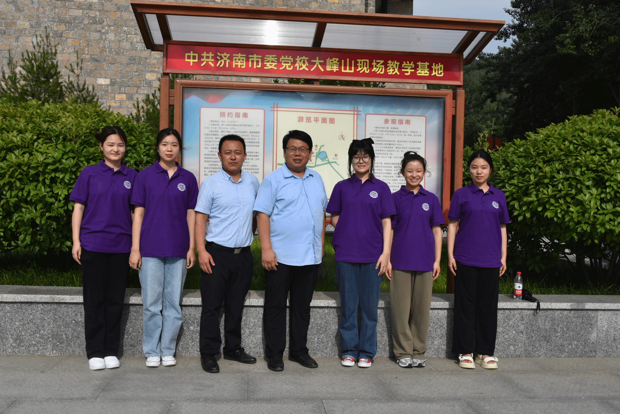 7月6日下午,志愿者服务队跟随孝里中学高级教师、孝堂书院院长、大峰山革命根据地纪念馆的参建者马骏走进大峰山党性教育基地。大峰山革命根据地,是抗日战争、解放战争的战斗堡垒,是山东联系延安秘密交通线上的重要中转站,是培养党政军干部的红色摇篮,为抗日战争、解放战争的胜利做出了重要贡献,熔铸了“信仰如山,一心为民,不怕牺牲,勇往直前”的大峰山精神,被誉为“泰西的延安”。在基地内的初心广场上,志愿者站在“为共产主义事业奋斗终身”巨大牌匾前面,听革命志士为了民族独立和革命胜利感人故事,感悟为共产主义奋斗奋斗终身的初心使命,增强自身爱国敬业奉献意识,树立自己的伟大理想。而后,志愿者参观大峰山革命陵园,听马骏老师讲解纪念碑、无名烈士墓建设经过,体会革命先烈舍生取义、捐躯报国的献身精神和国家安全稳定、繁荣发展的来之不易。
