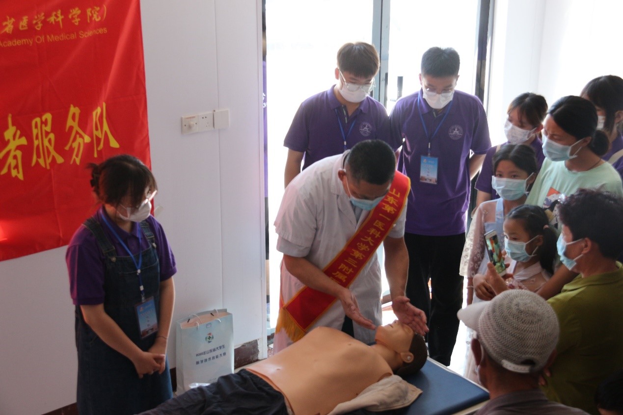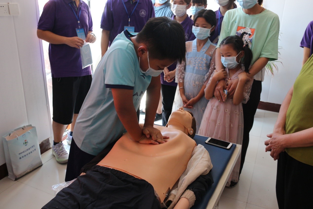 义诊结束后,急诊科专家现场为村民和儿童宣讲急救知识,并在现场进行了心肺复苏和海姆立克法的示范培训,确保他们能够学会,在紧急情况发生时能够挽救更多的生命。培训结束后,现场村民和儿童热情高涨,进行了亲身体验,纷纷表示学会了急救知识,掌握了一个技能,可以在危急时刻派上用场,非常感谢三附院的专家们。
