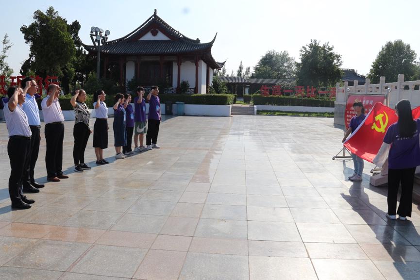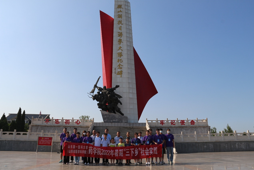 学习革命精神,立志爱党爱国。7月8日下午,药学院党委书记史仁玖等四位老师带领“岐黄本草”志愿者服务队和留守儿童来到微山湖英烈纪念园开展爱国主义教育。坐落于纪念园中央的是“微山湖抗日游击大队纪念碑”,高大雄伟的纪念碑上镌刻着微山县在土地革命、抗日战争、解放战争牺牲的1100名烈士姓名。史仁玖同志带领全体师生党员面向鲜红的党旗和纪念碑,举起右拳、凝视金黄色的镰刀锤头,庄严地重温入党誓词,誓言铿锵有力,展现了师生党员们永远追随党、永远忠于党的执着与坚定。