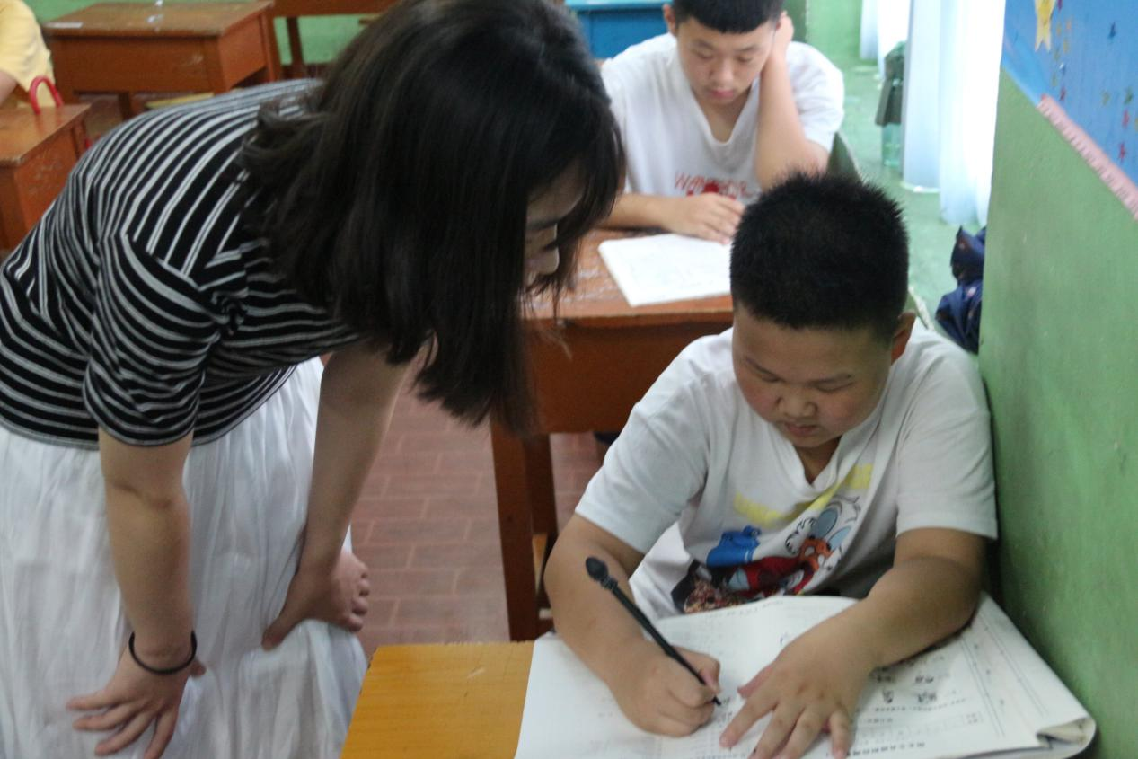 不仅如此,服务队员们还结合小朋友的日常学习情况进行了针对性的暑期作业学习辅导,规范了他们英文字母的书写,与他们共同探讨了当前学习生活中存在的问题并对其进行思考答疑,同时对课本中出现的课外知识进行了讲解和拓展,小朋友们的积极性很快调动起来,主动与大哥哥大姐姐进行交流,让服务队员与孩子们的关系更加亲近了。