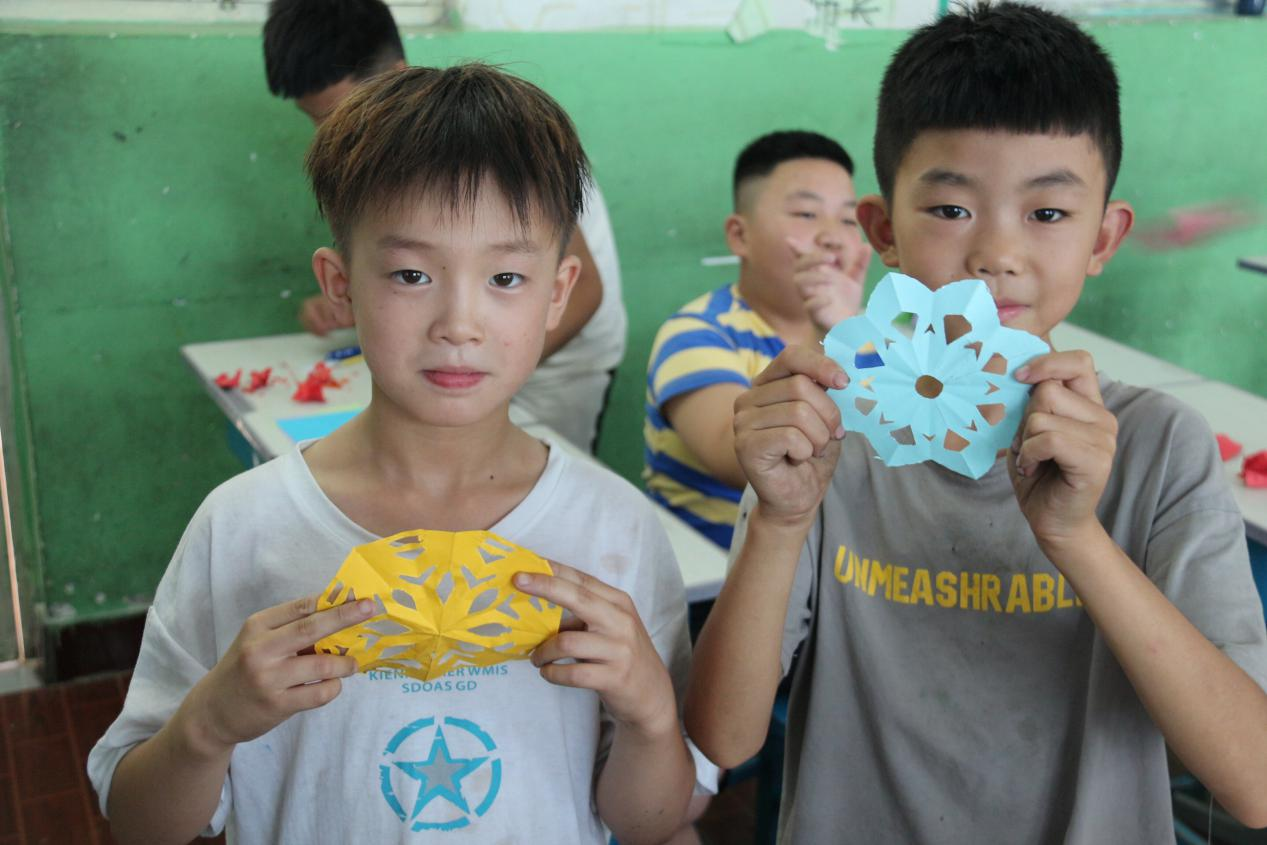 为丰富留守儿童的暑期生活,培养孩子们的动手能力,提高孩子们对科学知识和中国传统文化的认知。7月10日,山东第一医科大学(山东省医学科学院)药学院“岐黄本草”志愿服务队在微山县昭阳街道中心小学为留守儿童准备了一场关于中华传统文化和自然科学的课堂盛宴。科学实验课上,服务队员们通过各种各样的趣味实验向儿童们传授科学知识,既满足他们的好奇心,又培养了专注探索精神;传统文化课堂上,服务队员们为儿童们准备了非物质文化遗产剪纸和传统彩灯制作的活动,孩子们积极踊跃地跟着“老师们”动手折、画、剪,对中国传统文化产生了浓厚兴趣,掌握了彩灯和剪纸的制作技巧,展示出一幅幅优秀作品。