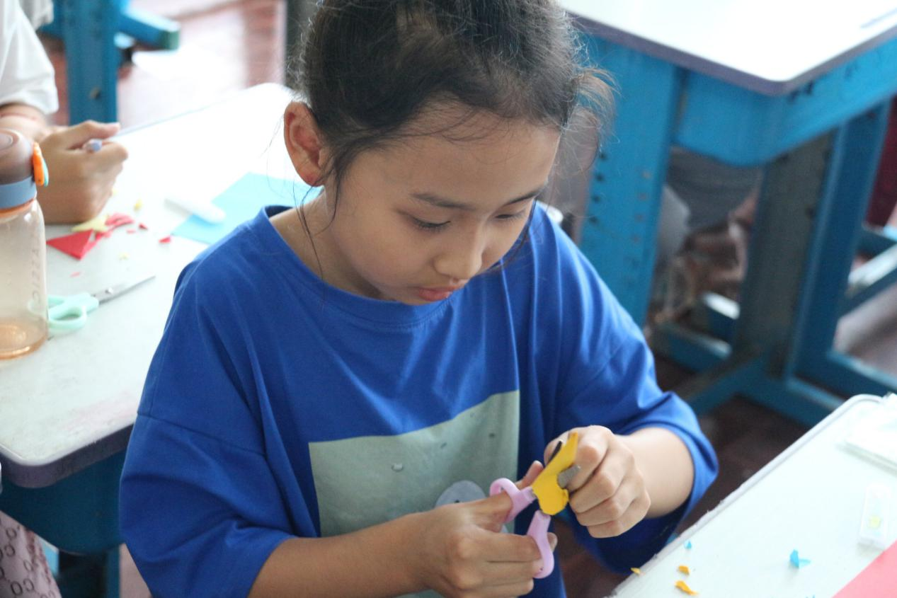 “传统文化要入课堂,更要入心”。传统文化课程是儿童们接受中华民族优秀传统文化教育的启蒙课程,让孩子们在感受传统文化的滋养中,陶冶情操,激发爱国情感。在传统文化的主题课堂上,服务队员们为同学们准备了丰富的传统文化知识和手工制作内容。一把剪刀,一张折纸,构造了儿童们的欢乐世界,普通的纸张在一双双巧手的剪裁下,焕发出了别样的风采。让剪纸艺术走进课堂,不仅培养了他们的动手能力和审美能力,还可以陶冶道德情操,提升艺术素养。