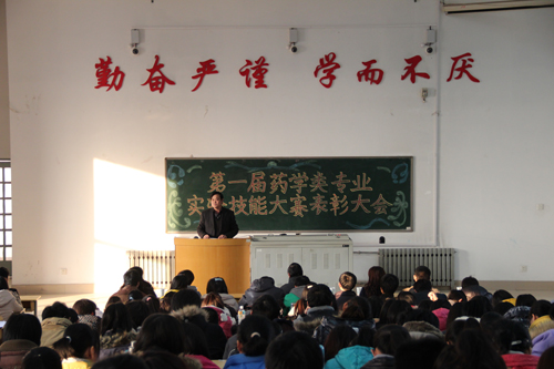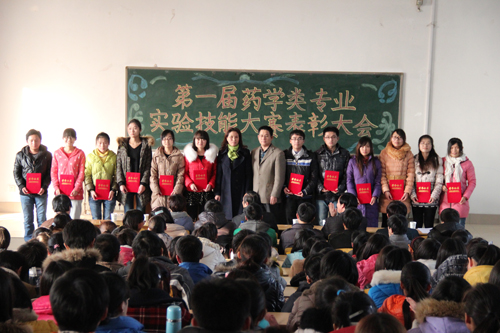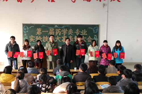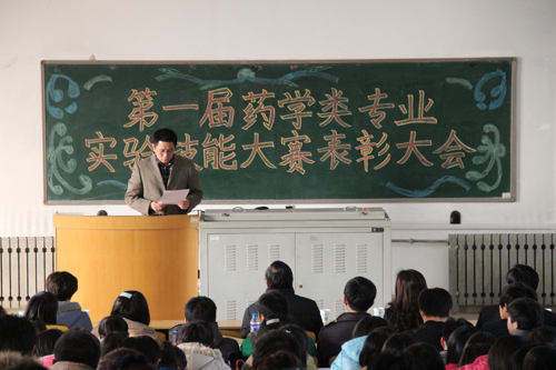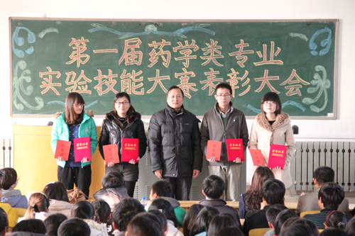 最后,药学院院长王德才发表了讲话。他首先感谢了积极参与本次比赛的广大师生,并向获奖选手表达了祝贺。他指出,本次比赛有两个目的,首先旨在提高广大学生对实验课的重视程度,促使同学们多动手、多思考、多总结,进而提高实验操作能力;其次旨在提高教师对实验教学的重视程度,督促实验课教师提高自身水平,并为学生创造更多的操作机会。王院长还表示,该项比赛今后将持续地举办下去,保证每位同学在校期间有两次参加机会,并在今后的比赛中不断改善比赛形式、加大奖励力度,从而促使同学们的实验技能得到大幅提升。