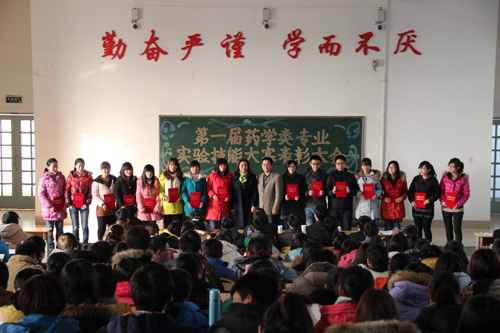 12月4日至21日药学院举办了“第一届药学类专业大学生实验技能大赛”并取得了圆满成功。为表彰在比赛中表现突出的同学,1月8日下午,药学院于教学南楼C4020召开了第一届药学类专业实验技能大赛表彰大会。教务处副处长段桂运教授、药学院领导班子、教师代表及全体学团老师出席了本次大会。