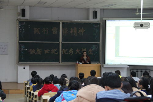 为宣扬雷锋精神,3月18日下午,药学院于教学北楼B1006召开了“践行雷锋精神,做新世纪优秀大学生”的专题讲座,由护理学院薛雅卓教授担任主讲。