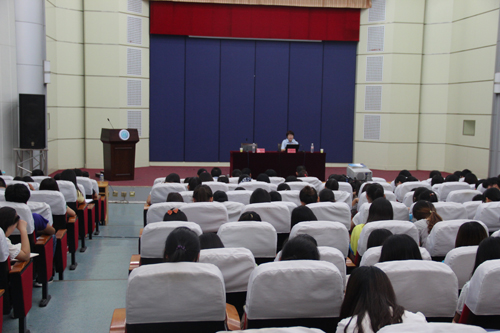 范红艳副庭长结合多种案例讲解了抢劫罪、盗窃罪、寻衅滋事罪、强奸罪、故意伤害罪及故意杀人罪等校园周边多发性犯罪,并阐述了缓刑和正当防卫的相关法律规定。范副庭长还就失恋、网络成瘾、吸毒等对青少年造成的不良影响及诱发犯罪的原因进行了详细的说明,她提到“小人气大,君子量大”,并告诫同学们一个能开辟一番事业的人,一定是心胸开阔的人。最后,范红艳希望同学们能够学会包容、珍爱生命,不要以身试法,要远离违法犯罪。