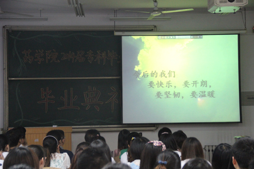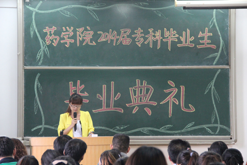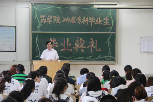 6月20日上午十点,药学院2014届专科生毕业典礼于教学北楼A3003隆重举行。药学院领导班子,各教研室老师、学团老师及2014届全体专科毕业生参加了毕业典礼。