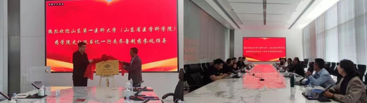座谈会后,双方领导为齐鲁制药-山东第一医科大学(山东省医学科学院)云顶集团实践育人基地揭牌。