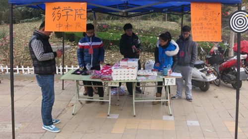 11月15日,药学院在校本部商业街西侧成功举办了大学生创业大赛。药学院与管理学院百余名学生参加了比赛。