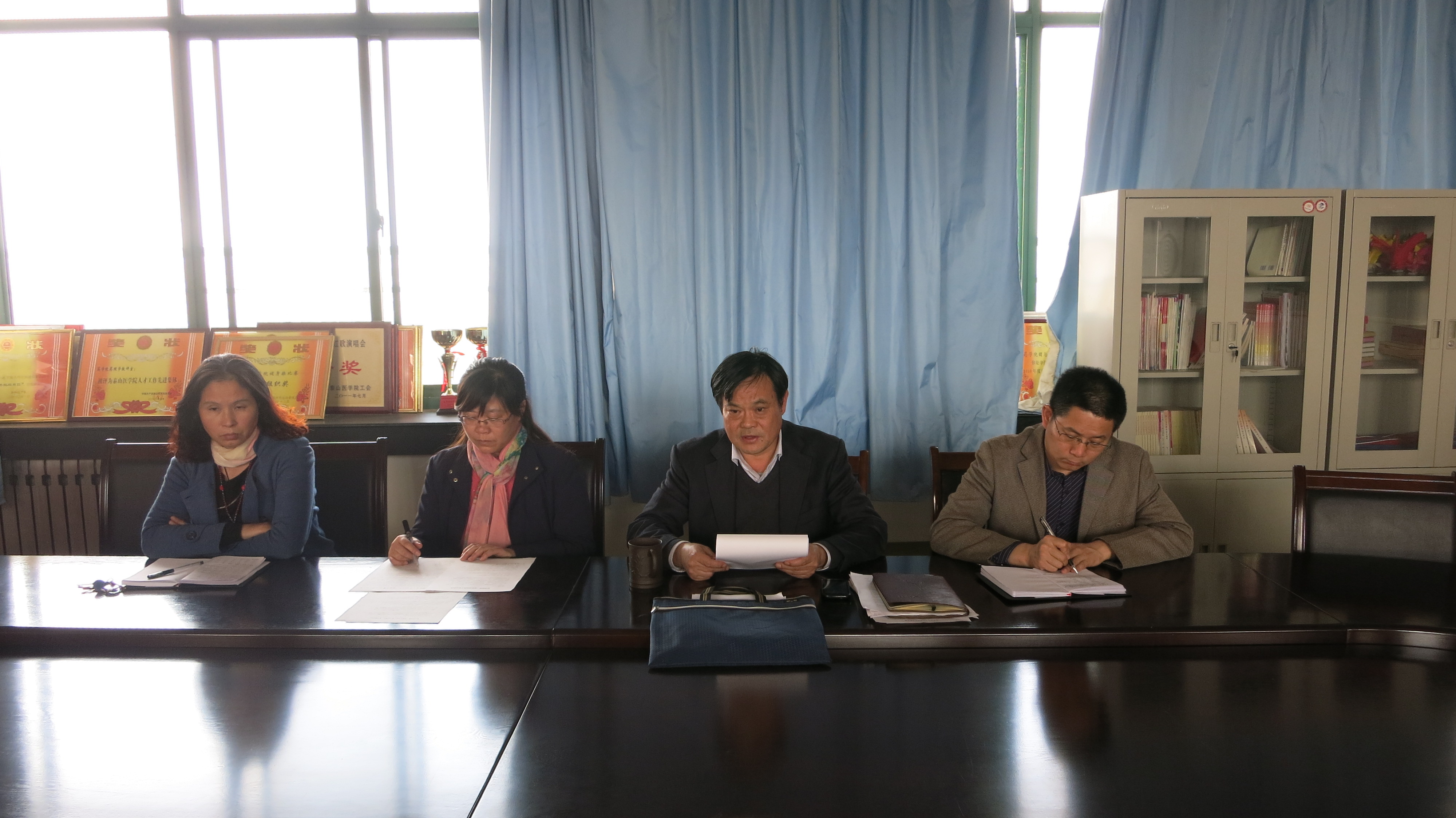 院长王德才首先做了2014年院长工作报告,回顾了过去一年的工作。2014年在学校党委、行政的领导下,药学院以党的群众路线教育实践活动和泰山医学院独立办学40周年校庆活动为契机,紧抓机遇、开拓创新,药学院快速平稳发展,学院的教育教学工作井然有序。全体教职工围绕学校的教育发展规划,结合药学院的实际状况,以全面提高教育教学质量为目标,以深化中青年教师队伍建设为主线,以强化教学内容改革为重点,以覆盖各教学环节的质量保证和保障体系为依托,顺利完成了日常教学工作、教学档案建设和管理工作、稳步提升课堂教学质量、推进实践教学基地建设、强化科学研究、促进学术交流、做好重点学科建设与研究生工作、强化人事服务与师资队伍建设、落实院务公开、做好学团管理及毕业实习工作。他还提出了2015年的主要工作计划,计划从日常教学、研究生教育、科研工作、人才培养和师资引进等方面做了全面而具体的要求。