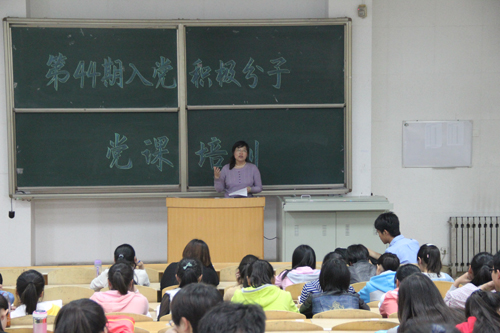 张鸣凤从“为什么要加入党组织”和“怎样加入党组织”两个大方面讲解了党的有关知识。她强调,入党积极分子首先应该对党有深刻的认识和坚定的信念,明确自己的入党动机。接着,张书记又从学习成绩、政治思想觉悟、专业功底、人际交往能力、综合素养五个方面介绍了加入党组织的基本要求,她指出,在夯实专业知识、保证优异学习成绩基础上,要培养较高的政治思想觉悟,增强人际交往能力,树立正确的人生观和价值观,提高个人综合素养。