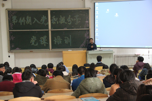 贾伍员首先从党的纪律、党的性质等方面为同学们做了系统全面地讲解。随后,他又从如何做好一名入党积极分子出发,重点阐述了一名优秀的入党积极分子应该具有的素质。他强调,现阶段同学们应该用心学习,博览群书,拓展知识面,同时发扬脚踏实地、实事求是、自立自强的作风,努力成为有责任,有担当的人才。