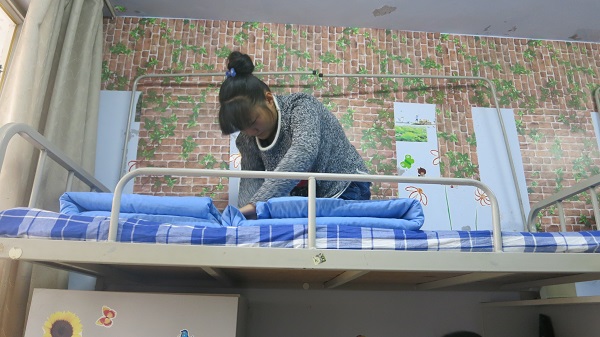 在为期半个小时的内务整理活动中,同学们争分夺秒大整装,精诚协作创整洁。实行明确的四人分工,各项任务有条不紊,两人叠被,一人收拾垃圾,一人整理桌子,将杂乱无章的物品归放整齐,整理过后的宿舍明亮如新,被子叠放方正,棱角分明,室内卫生工具及生活用品摆放整齐,窗明几净,整洁美观。