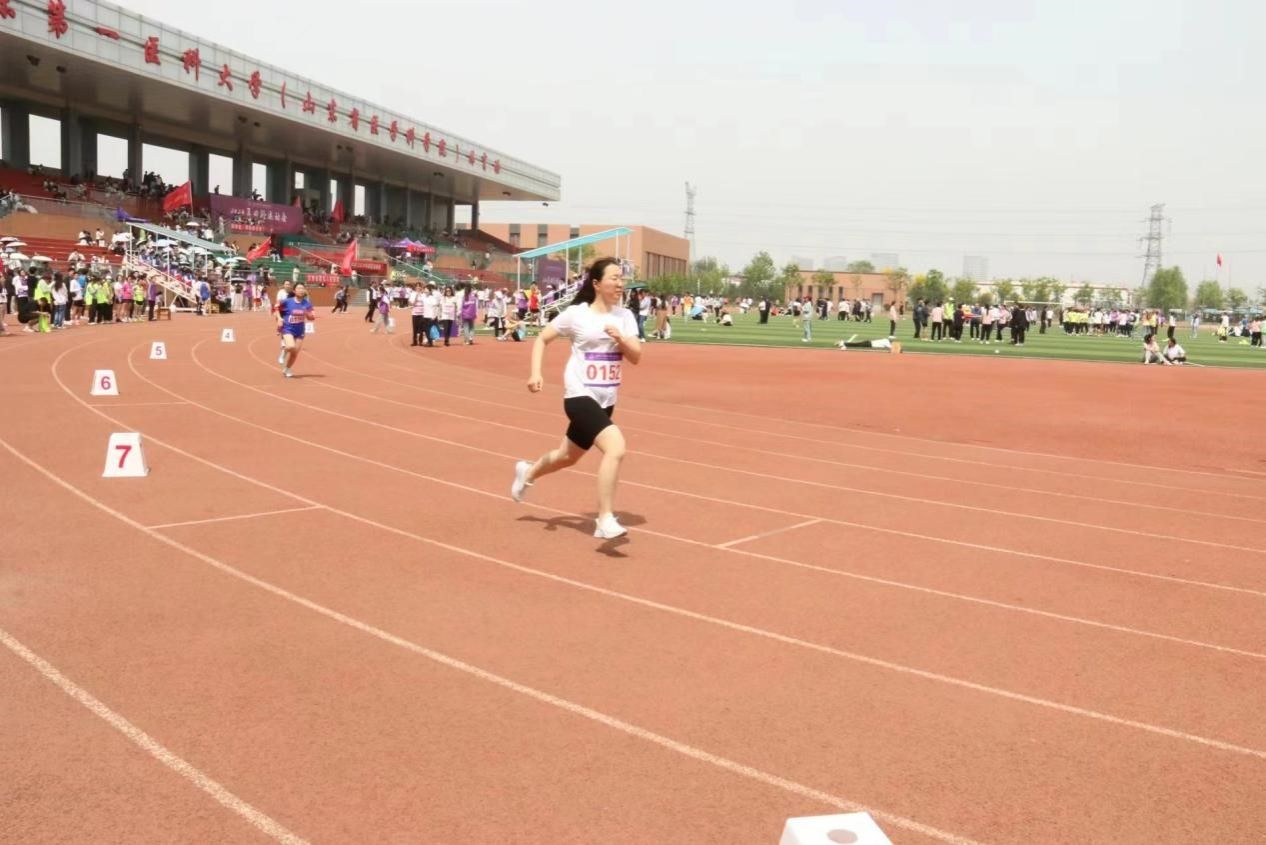 径赛场上,经过奋力拼搏,武昊、薛章勤和王欢分别斩获男子组100米第四、第五和200米第一,白著双获1500米第一。白著双、贾伍员、王琢三位老师分获400米第二、第四和第七名,并成功斩获男子组4×100米第二名 。在女子组竞赛中,宋宝琴、冉文文、分获100米第一和第三,王秀、郭睿琦、姚丽荣分获200米第一、第三和第五名,彭曼曼、张玲、姚丽荣分别荣获400米第一、第三、第五名,并团体成功斩获女子4×100米第一名的好成绩!