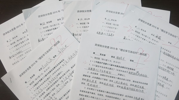 为深入学习和广泛宣传党的十八届五中全会精神,深刻领会《中国共产党廉洁自律准则》《中国共产党纪律处分条例》对党员的具体要求,进一步推进“三严三实”专题教育,药学院分党委在11月中旬至12月中旬,开展了药学院第二届“理论学习活动月”活动,全体教工党员、处科级干部、2015年下半年新发展的学生预备党员,共计55名同志人参加了学习活动。