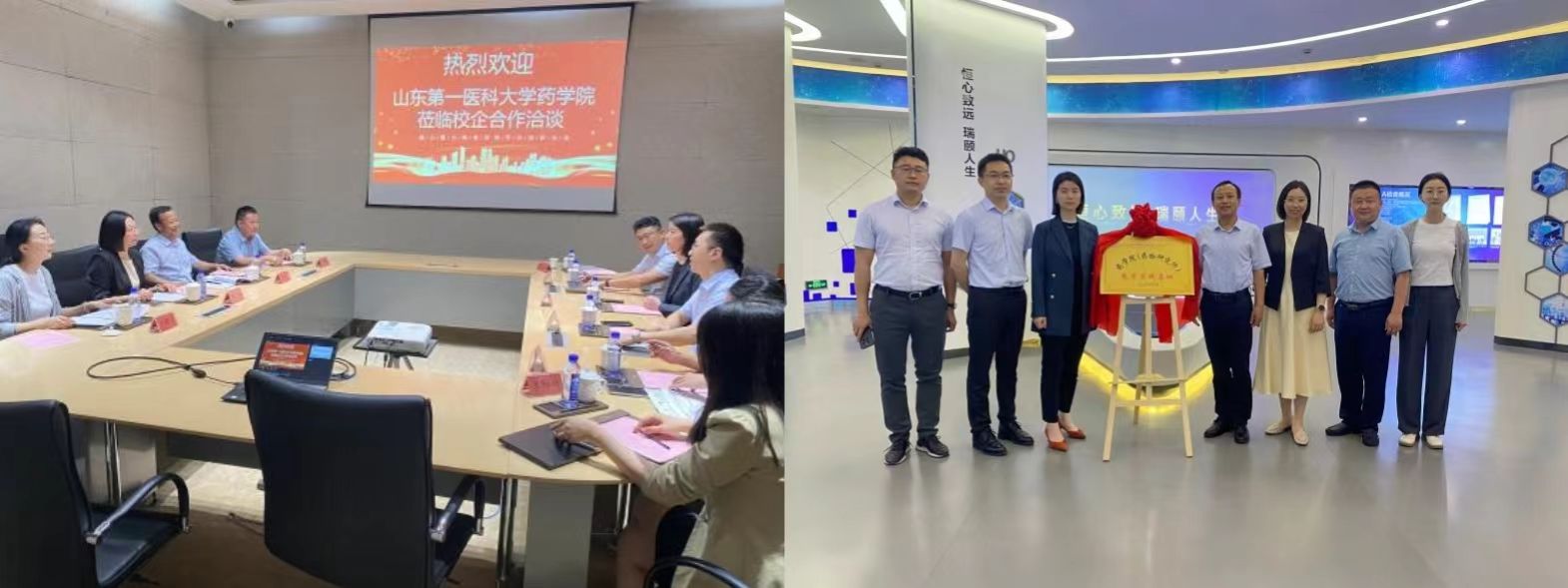 座谈会后,双方领导为江苏恒瑞医药股份有限公司-山东第一医科大学(山东省医学科学院)云顶集团教学实践基地揭牌。