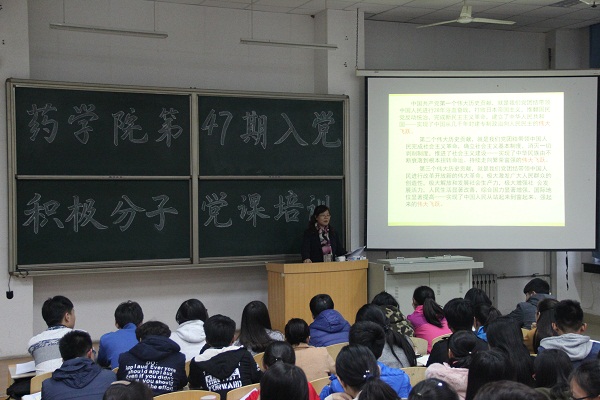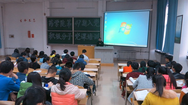 自10月31日起药学院于教学北楼A3018开展了为期三周的第47期入党积极分子党课培训,分别由药学院党委副书记张鸣凤书记、学团乔峰、贾伍员老师主讲,药学院全体入党积极分子参加了党课培训。