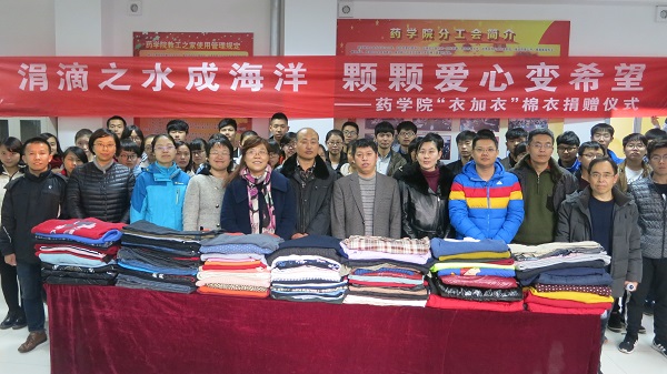为关爱山区儿童,加强师生精神文明建设,培养当代大学生无私奉献的精神风貌,11月30日下午,药学院于综合实验楼A339开展了以“爱心捐助,情暖童心”为主题的“衣加衣”活动。药学院各教研室教师代表及行政人员等出席了此次活动。
