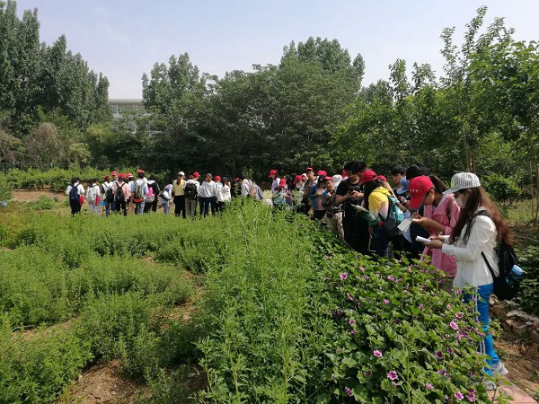 药学院党委委员、中药学教研室金松南主任、第三党支部段瑞书记带领9名老师,分别在校本部校园、药用植物园、中药标本室、泰山三阳观、泰山锦绣谷等地开展野外实习教学。其中药用植物园位于医学综合实验楼南侧,占地近5亩,已经种植栽培近200种药用植物,草本、木本、藤本、灌木、乔木各类药用植物错落有致,具有教学、观赏、绿化多种功能。中药标本室位于化学实验楼2号楼5层,收藏了植物腊叶标本、浸液标本、生药标本共计1000余种。泰山不仅是世界文化与自然遗产,还是驰名中外的药用植物宝库,据了解现有药用植物1000多种,泰山何首乌、四叶参、黄精和紫草被中医药界誉为“泰山四大名药”,泰山三阳观、泰山锦绣谷药用植物资源丰富,并有多种道地药材和地方名药,是我校药学院最重要的野外实习基地,要求带教教师具有很强的实践教学技能和较高的教学组织能力。老师们不顾风吹日晒,脚踩崎岖山路,一种一种的带领学生寻找,一株一株的指导学生辨认。