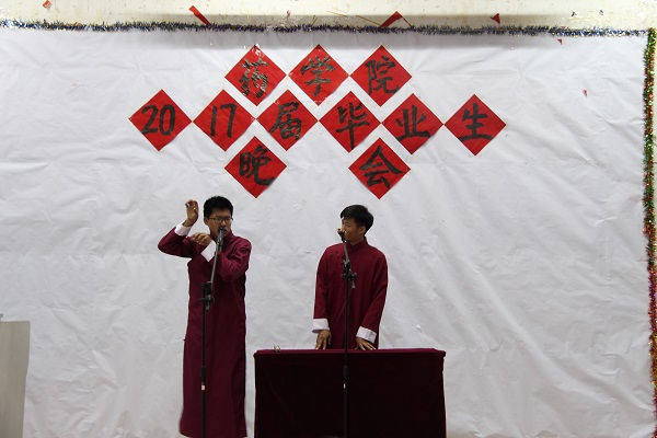 晚会以各班毕业生制作的班级视频开篇,浓缩了几年校园生活的点点滴滴,引发了毕业生们的强烈共鸣。激情飞扬的开场舞点燃了全场气氛,《江南》、《一个像夏天一个像冬天》等一首首动听的旋律、吉他演奏《愿望的樱花》为大家带来了一场酣畅淋漓的视听盛宴,当然也少不了令同学们捧腹大笑的小品以及相声《好好学习》。时间就这样不知不觉地过去,晚会也在一阵阵热烈的掌声中落下了帷幕。