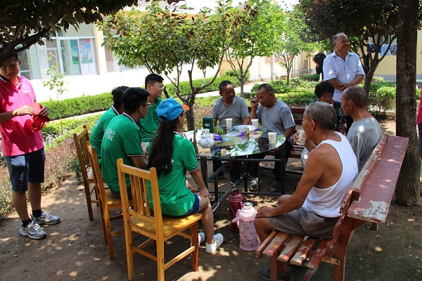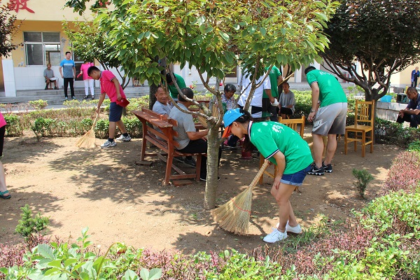 来到敬老院,院长首先对师生们的到来表示衷心的感谢。他简要介绍了敬老院近几年的发展情况,并表示今后会竭尽全力让敬老院老人们生活得更幸福。志愿者们在院长的带领下深入老人房间和庭院,帮助老人打扫卫生。天气炎热,志愿者们为老人斟上茶水,与老人在树荫下进行了亲切的交流,相互了解生活情况,现场气氛其乐融融。
