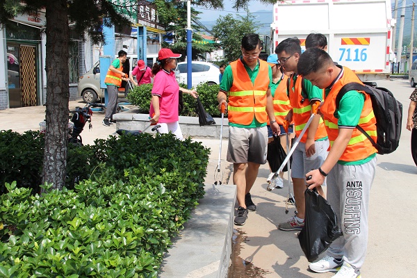 7月18日,药学院师生一行首先来到位于泰山景区的大津口乡响应“创城”建设,大津口乡活动负责人宗振胜对师生们的到来表示衷心的感谢。随后,将志愿者们分为了两大组,负责清理街道卫生,为争创文明城市而努力。大家还走上街头向乡民分发创建文明城市倡议书,倡导大家除陋治乱,以身作则,争做文明市民,共建美好家园。最后,为维护市容市貌,大家走进商户,帮助商户整理摊位,力争让每一条街道都干净整洁。虽然汗流浃背,但大家仍然干劲十足,充分体现了大学生志愿者们不怕脏、不怕累、无私奉献的精神。