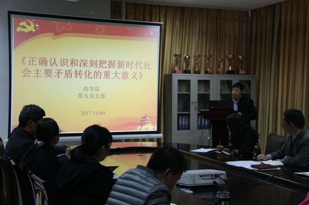 11月16日下午,药学院召开党的十九大报告学习研讨会,全院教职工参加会议,党委委员、团总支书记张萌主持会议。五名同志分别代表所在党支部汇报了学习体会。