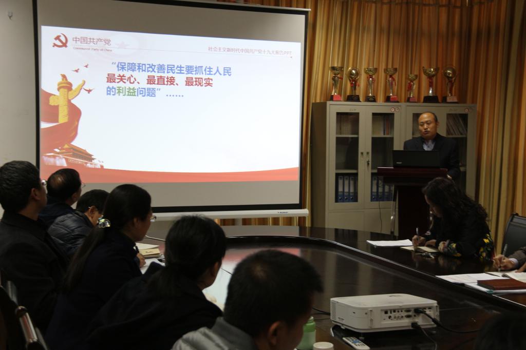 第四党支部书记刘克同志以《提高保障和改善民生水平,加强和创新社会治理》为题发言,他说习近平同志在十九大报告中提出,提高保障和改善民生水平,加强和创新社会治理,要抓住人民最关心最直接最现实的利益问题。他从教育、就业、构筑多层次的社会保障体系、打赢脱贫攻坚战、让全体人民住有所居、幼有所育、弱有所扶等方面分别进行了阐述。