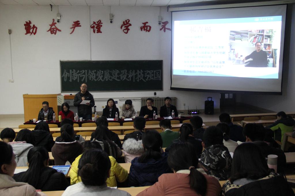 赵雪梅教授则围绕“什么是创新”、“大学生如何创新”、“如何总结创新成果”及“指导大学生创新”四个方面展开解说,提出了见解性的创新指导。