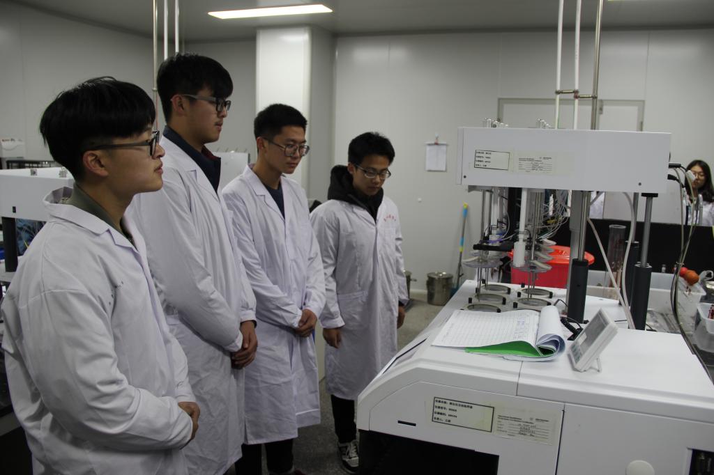 公司领导首先对同学们的到来表示热烈欢迎,随后带领同学们参观了企业吸入制剂工程研发实验室。在理化和液相实验室里,身着隔离衣的药物研发人员,严谨认真、一丝不苟地进行仪器操作实验;在天平和粒度实验室里,各种先进设备引人注目,桌柜椅凳一尘不染,精密仪器摆放有序。在负责人的详细解说下,同学们对其中几种仪器的原理及使用方法有了初步的了解,对药品生产的各个环节也有了进一步的认识,熟悉了相关的药物制作流程。