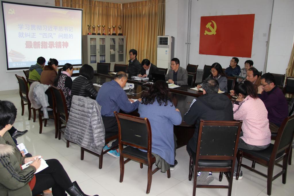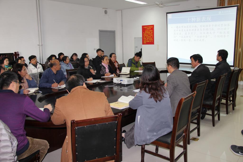 12月13日下午,药学院召开全体教职工大会,传达学习习近平总书记就“纠正”四风问题的最新指示精神。