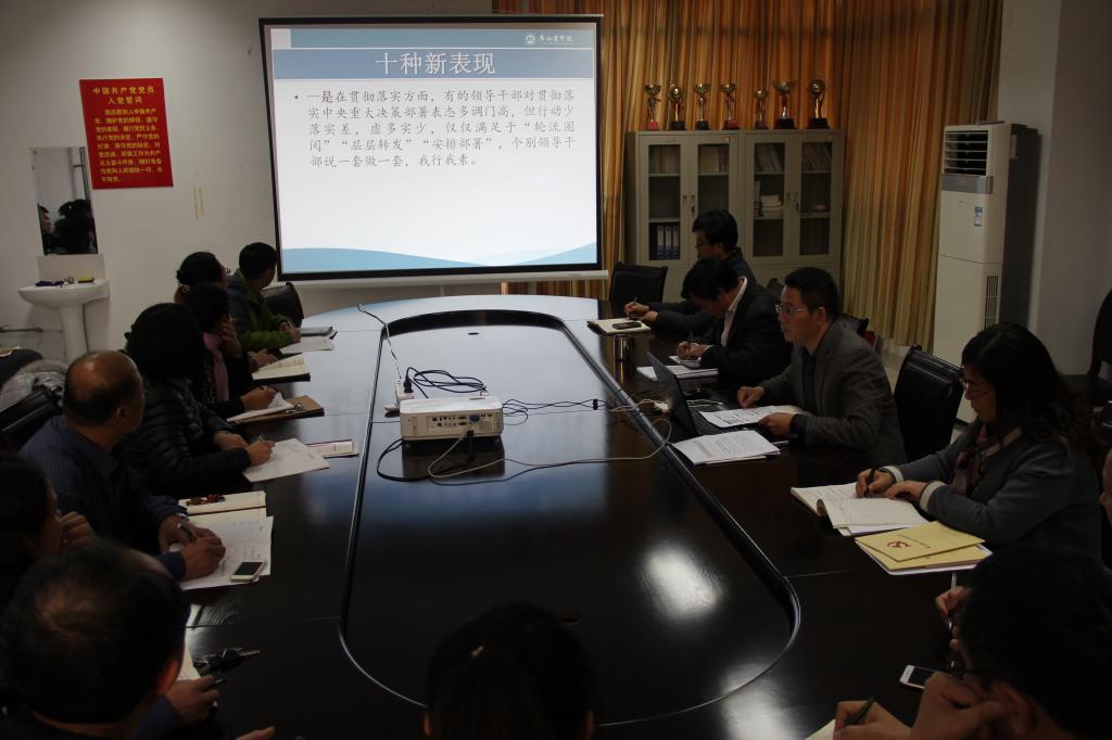 药学院党委书记龙跃洲主持会议。会议传达了学校关于学习贯彻习近平总书记就纠正“四风”问题最新指示精神的会议精神和通知要求,学习了新华社文章中列举的形式主义、官僚主义的十种新表现,查摆了日常工作中存在的问题。
