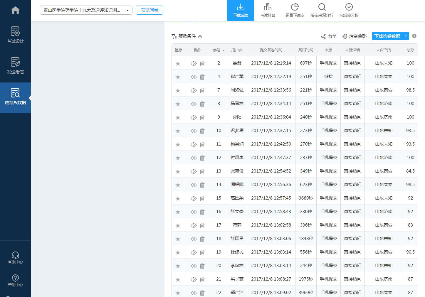 本次在线测试活动的开展,充分调动了同学们对十九大精神和迎评去筹知识的学习热情,确保了党的十九大精神真正在我院落地生根,也为迎评去筹工作的顺利进行提供了保障。