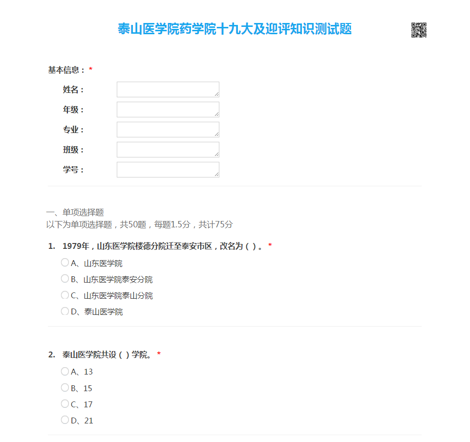 为进一步推动我院学生学习贯彻党的十九大精神,提高学生学习迎评去筹知识的积极性和主动性,药学院近期举行了学习党的十九大及迎评去筹知识在线测试。