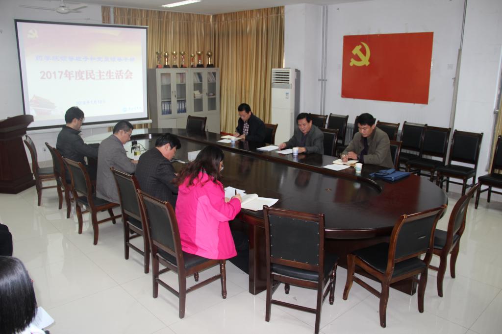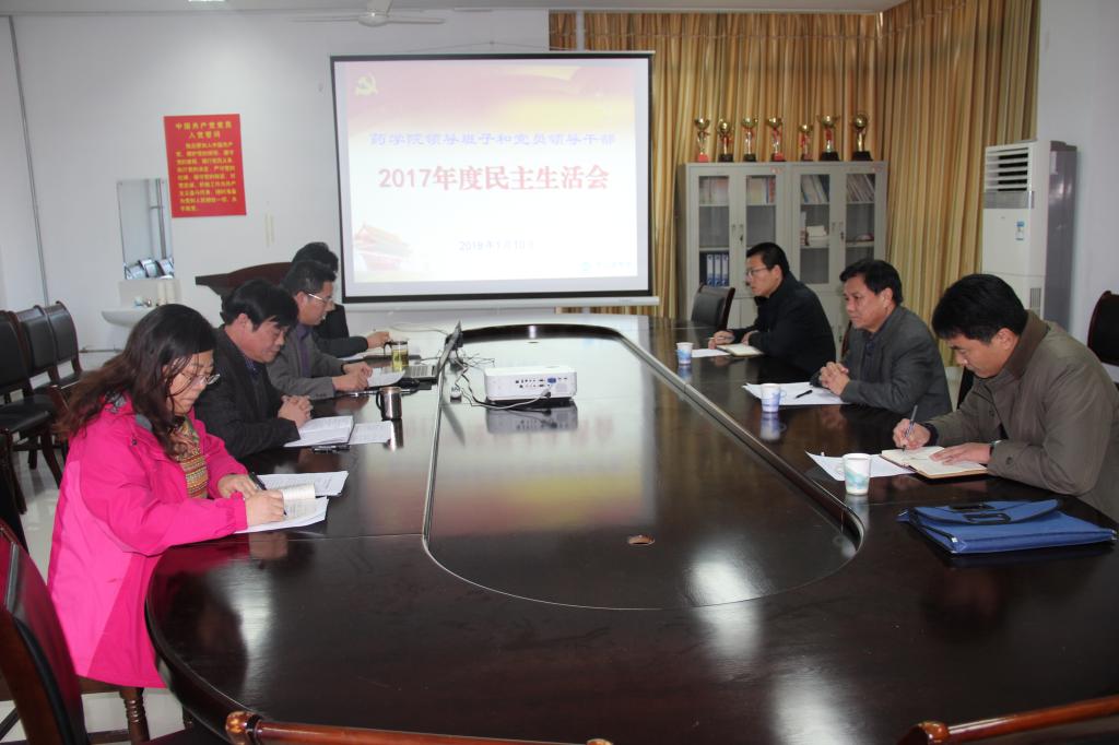 2018年1月10日下午,药学院召开领导班子和党员领导干部2017年度民主生活会。 校领导王庆宝到会讲话。