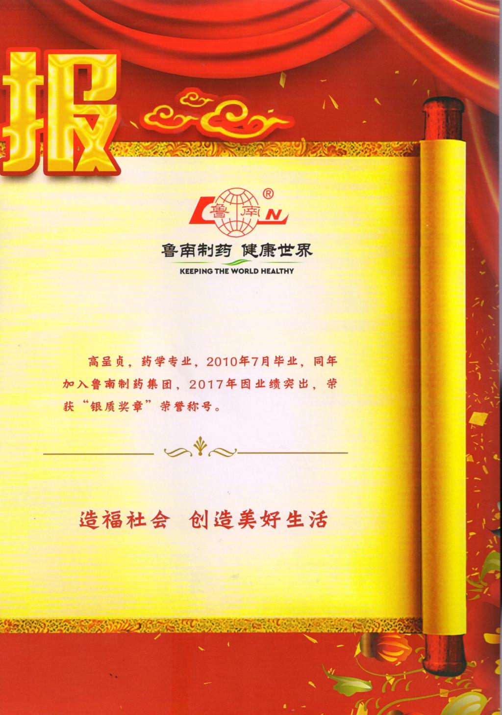 喜报表明,药学院工作在鲁南制药集团科研、生产、经营和业务销售等一线岗位的优秀毕业生共111人,他们秉承泰医登攀精神,工作中适应岗位快,作风朴实、任劳任怨、业务精湛、创新意识强,为企业发展做出了巨大贡献。其中2010届药学专业毕业生高呈贞、2013届药学专业毕业生王文登,因2017年工作业绩突出,荣获“银质奖章”荣誉称号。为此鲁南制药集团特向我院发来喜报与感谢信,对药学院学子为企业做出的贡献表示真挚感谢。
