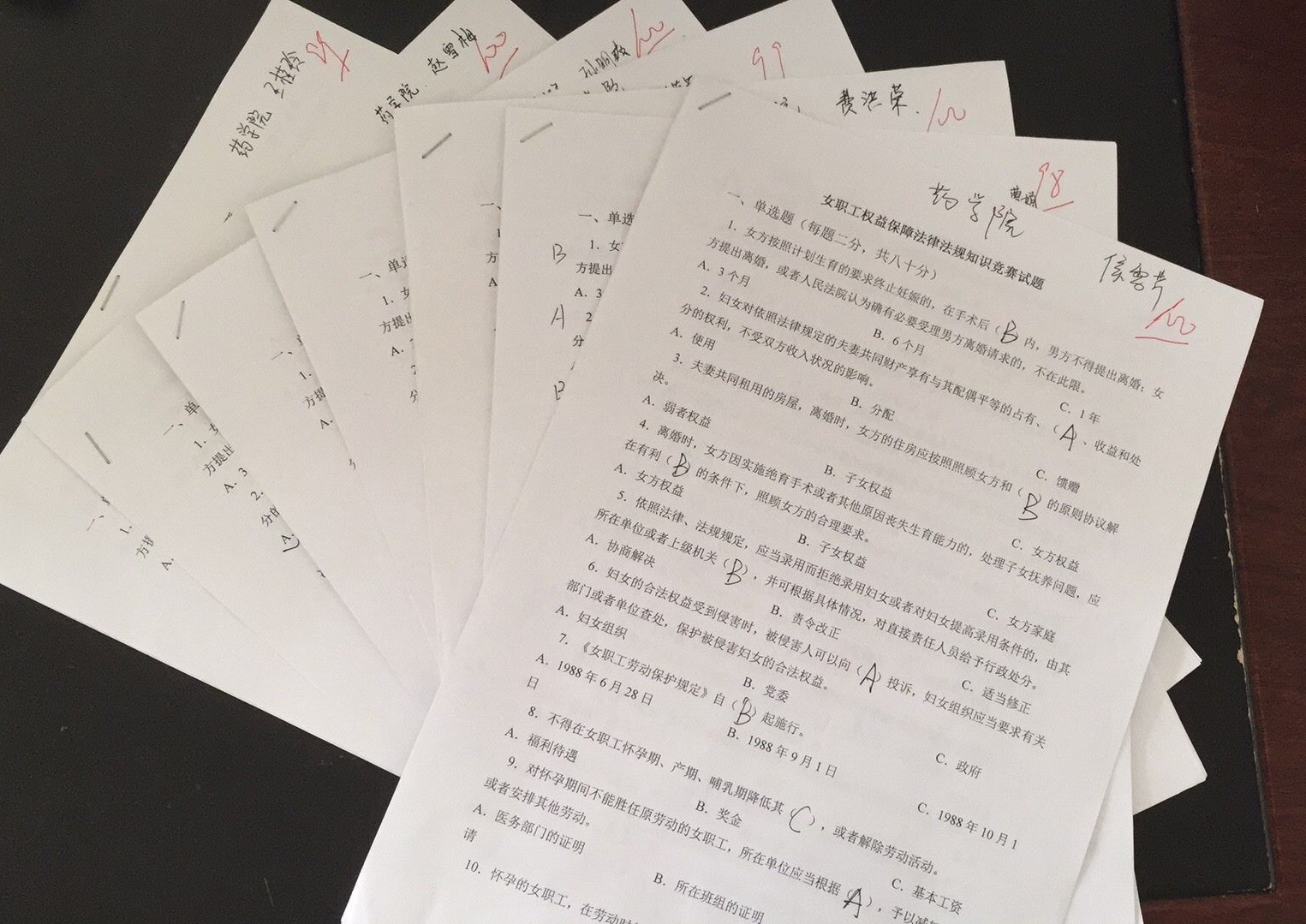 3月23日,药学院妇委分会在34名女教工中开展了《女职工权益保障法律法规》知识竞赛,并对积极参与的女职工给予了适当的物质奖励。此次活动取得了一定成效,进一步宣传和普及了女职工特殊权益的法律、法规、政策等知识,增强了女职工的法律意识和法律素质,女职工维权工作取得了新的进展,在药学院形成了维权女职工合法权益和特殊利益的良好氛围。