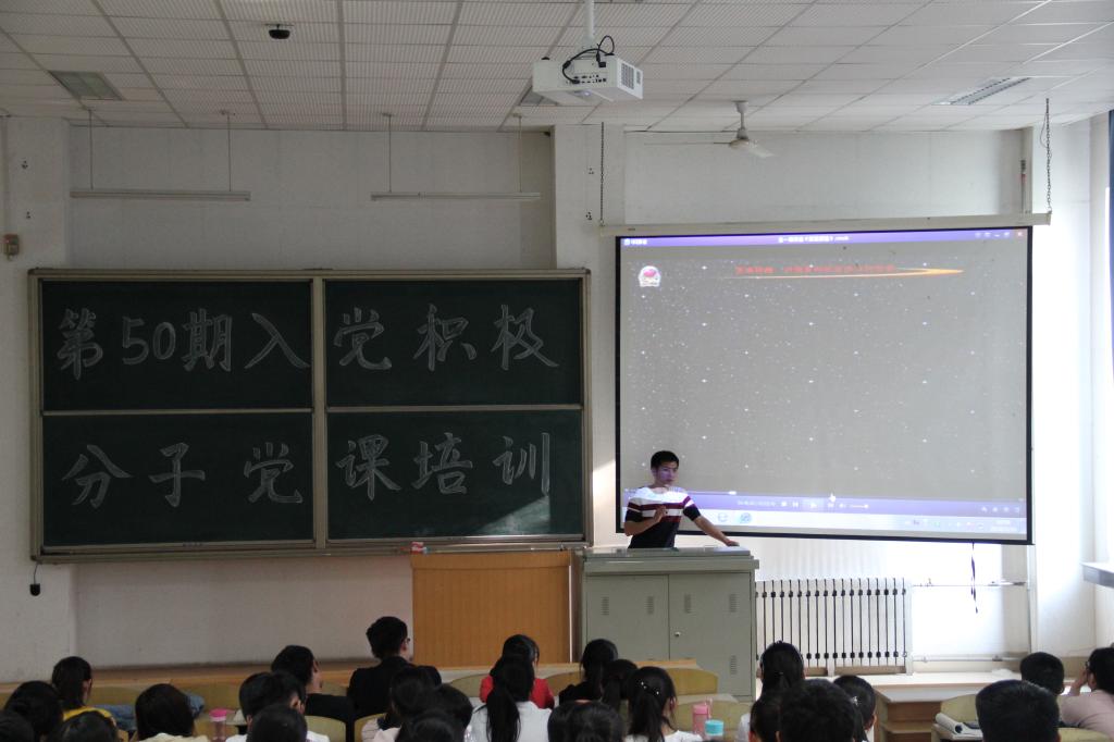 乔杰老师以“为什么要入党”为主题展开讲解,通过讲解“党的历史及优秀领袖奋斗史”一段材料,让入党积极分子充分认识到党的先进性、纯洁性,并指出作为一名入党积极分子,应端正自己的入党动机,努力培养政治思想觉悟,不断修身完善自我,早日向党员标准靠拢。