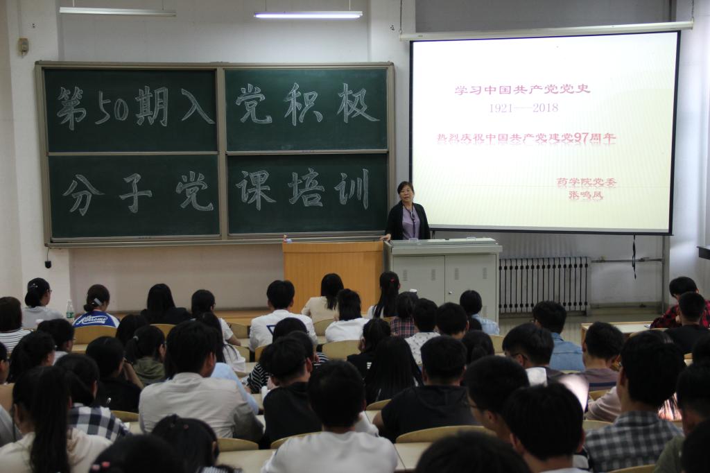 为提高同学们对党的性质宗旨、纲领章程、思想路线的认识,药学院近期于教学北楼A3018举办了第五十期入党积极分子课程培训班。药学院党委副书记张鸣凤、团总支书记张萌、学工办副主任乔峰、乔杰及贾伍员进行了授课。