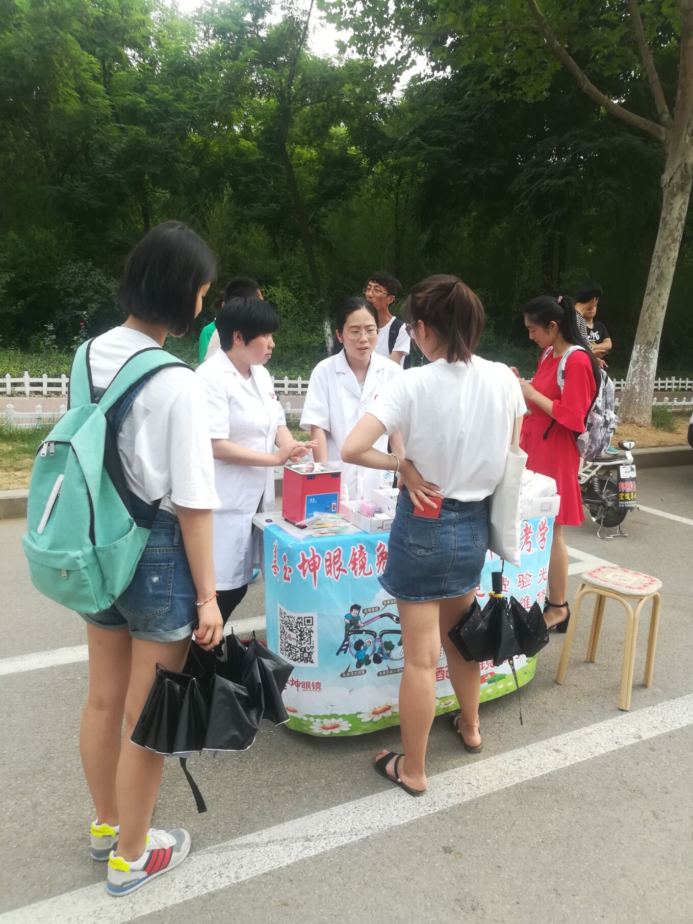 6月6日是第23个全国“爱眼日”,为了普及科学用眼的知识,提高学生的护眼意识,6月7日下午,姜玉坤眼镜店多位眼科医师于校本部泰山厅对面路南举行了义务咨询诊疗服务。药学院志愿者服务部参与了本次活动。