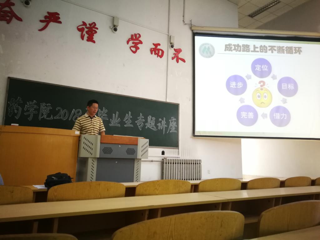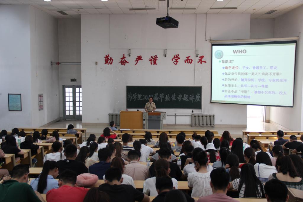 6月12日上午,药学院于教学南楼C4013教室举办了以“放飞青春梦,开启新征程”为主题的毕业生专题讲座。本次讲座由药学院党委书记龙跃洲主讲,药学院2018届全体毕业生参加。