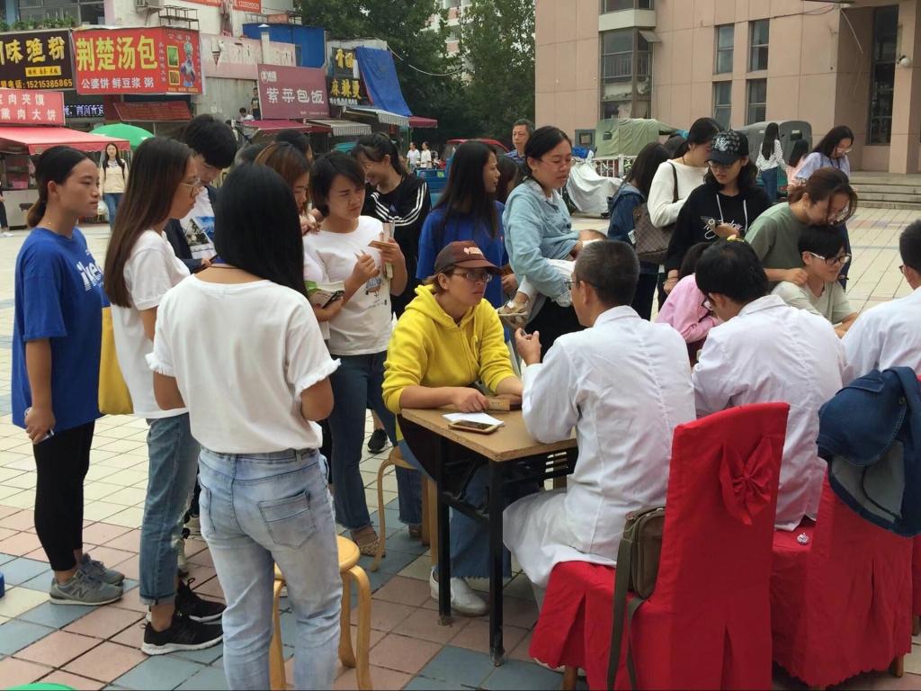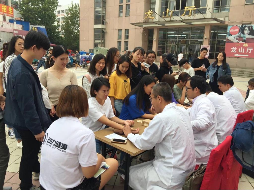 为践行两会健康精神,弘扬传统中医文化,迎接新生的到来,秉承志愿服务精神,庆祝两节佳日,9月16日上午九点,药学院青年志愿者团联合中医健康行志愿者团队的中医博士和老师、泰山区汉柏堂中医诊所,于泰山医学院新校区商业街东段为在校师生及员工进行中医义诊、健康咨询活动。部分爱好并致力于志愿活动、社会服务的民间中医大夫及在校医学生也参加了本次活动。