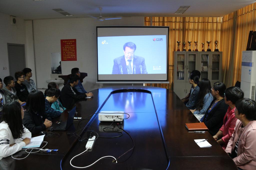 首先,我院组织教师和学生党员代表在D座A230会议室观看了在济南召开的首届山东儒商大会开幕式的实况直播。大会以习近平新时代中国特色社会主义思想为指导,深入贯彻落实习近平总书记视察山东重要讲话、重要指示批示精神,旨在推动山东高质量发展,实现“两个走在前列、一个全面开创”目标。