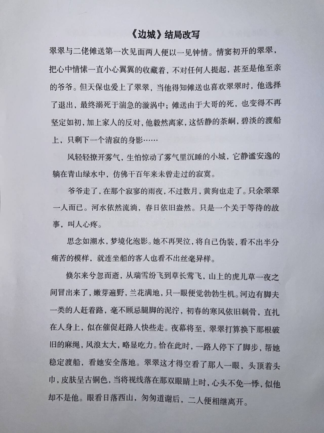 在众多参赛作品中,有的同学以细腻的笔触为悲剧故事赋予了温暖的转折,让读者在遗憾中感受到希望的力量;有的同学则以独特的创意颠覆了传统的结局模式,为故事注入了新的活力和思考;还有的同学通过巧妙的情节设计,将不同的文学作品进行融合,创造出了令人耳目一新的结局。