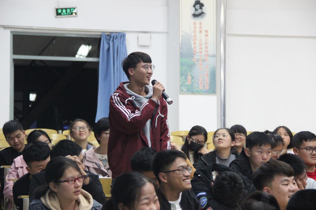 彭达同学从“多参加活动”、“多享受生活”、“常锻炼身体”、“多给自己找乐子”四方面展开发言,介绍了大学生活的多样性;随后从科研试验、课下自习、记好笔记等方面强调了大学的学习方法。