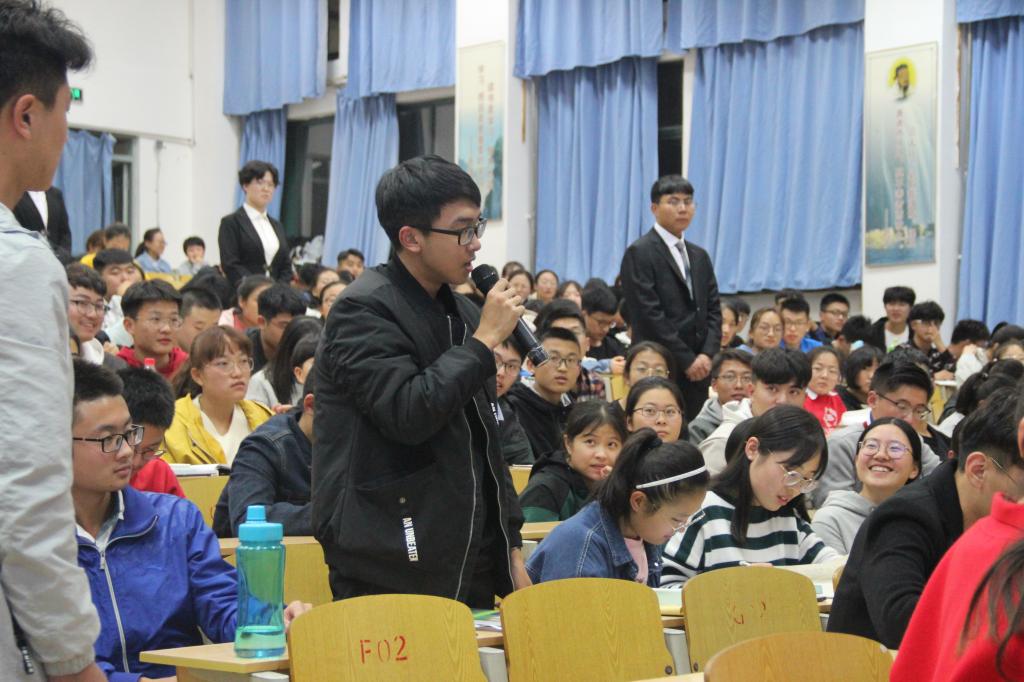 接下来是会议问答环节,大一新生踊跃发言,四名优秀学生对新生们所提出的问题给予了耐心细致的回答,现场气氛十分热烈。会议最后播放了一段以“梦想”为主题的励志视频,激励新生们勇敢追逐梦想,努力拼搏未来。同学们收益匪浅,大会在新生们热烈的掌声中落下帷幕。