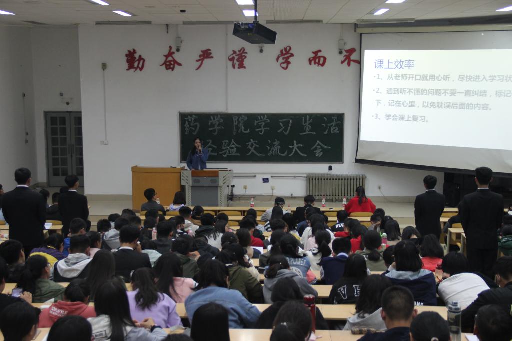 为使2018级新生更好地适应大学的学习与生活,促进新生全面发展,10月12日晚,药学院于教学南楼C1014举办了学习生活经验交流大会。来自2016级的彭达、张基、徐雪松及2017级的刘诗琪四名优秀学生代表做了学习经验介绍,药学院2018级全体新生参加了本次大会。