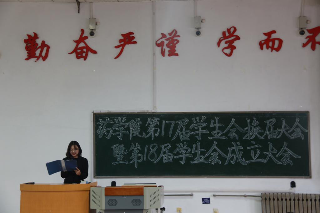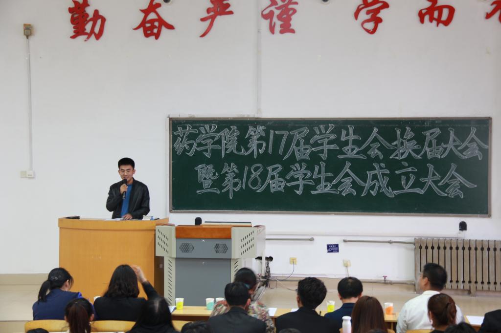 10月15日下午,药学院于教学南楼C1014举行了第17届学生会换届大会暨第18届学生会成立大会。药学院党委副书记张鸣凤、团总支书记张萌、学工办副主任乔峰、贾伍员及乔杰老师出席,第17届学生会常委成员和优秀干事及第18届学生会全体成员参加了本次换届大会。