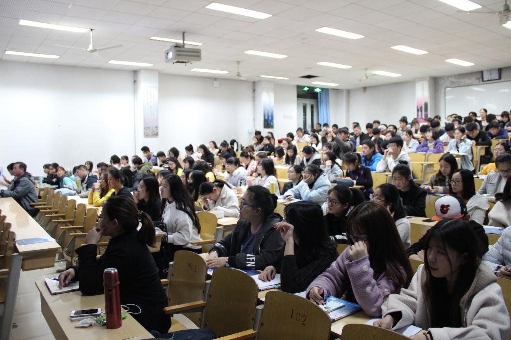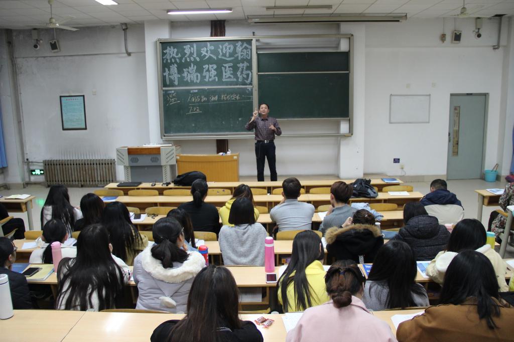 11月14日晚,翰博瑞强医药有限公司潘丽娜总监及技术开发处处长邸宝成、项目经理王中艳应邀来我校做了题为《药物临床试验现状》的专题报告,药学院院长王德才、党委副书记张鸣凤、全体辅导员、药学院和护理学院200余名学生参加了此次报告会。