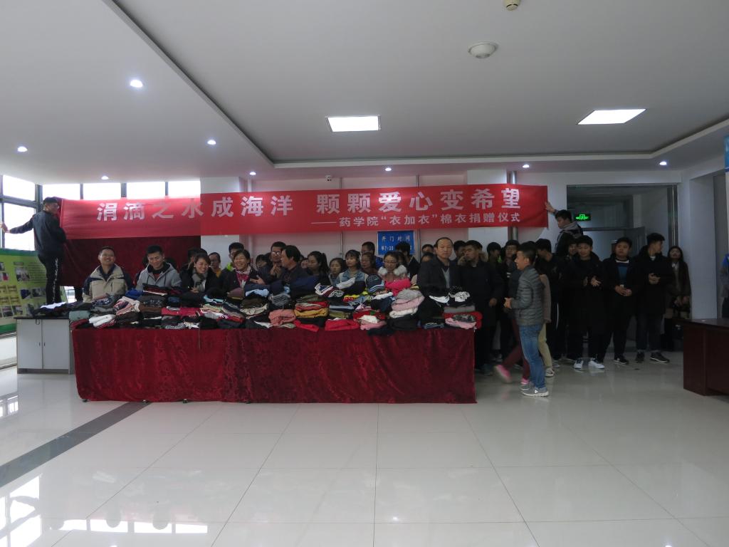 为加强师生精神文明建设,增强同学们的公益意识,11月23日下午,药学院于医学综合实验楼举办了以“涓滴之水成海洋,颗颗爱心变希望”为主题的第八届“衣加衣”爱心捐赠活动。药学院院长王德才、党委副书记张鸣凤、行政人员和各教研室教师代表及学生代表参加了此次活动。